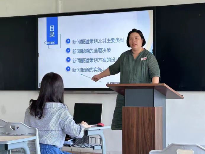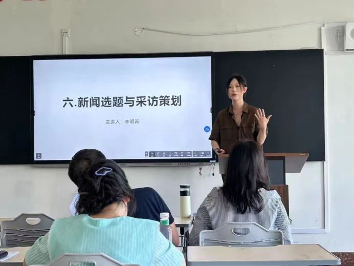 来自广告与广播电视系的李明芮老师讲解如何掌握新闻选题的实践技巧与写作要点,结合国内重大新闻案例,培养学生对新闻选题进行筛选和撰写相关报道的能力,让学生在课堂上学会新闻选题的实践要点,掌握筛选选题的实战技能,真真正正做到理论与实践相结合,使学生既有新闻理论的厚度,又有新闻报道实践的力度。