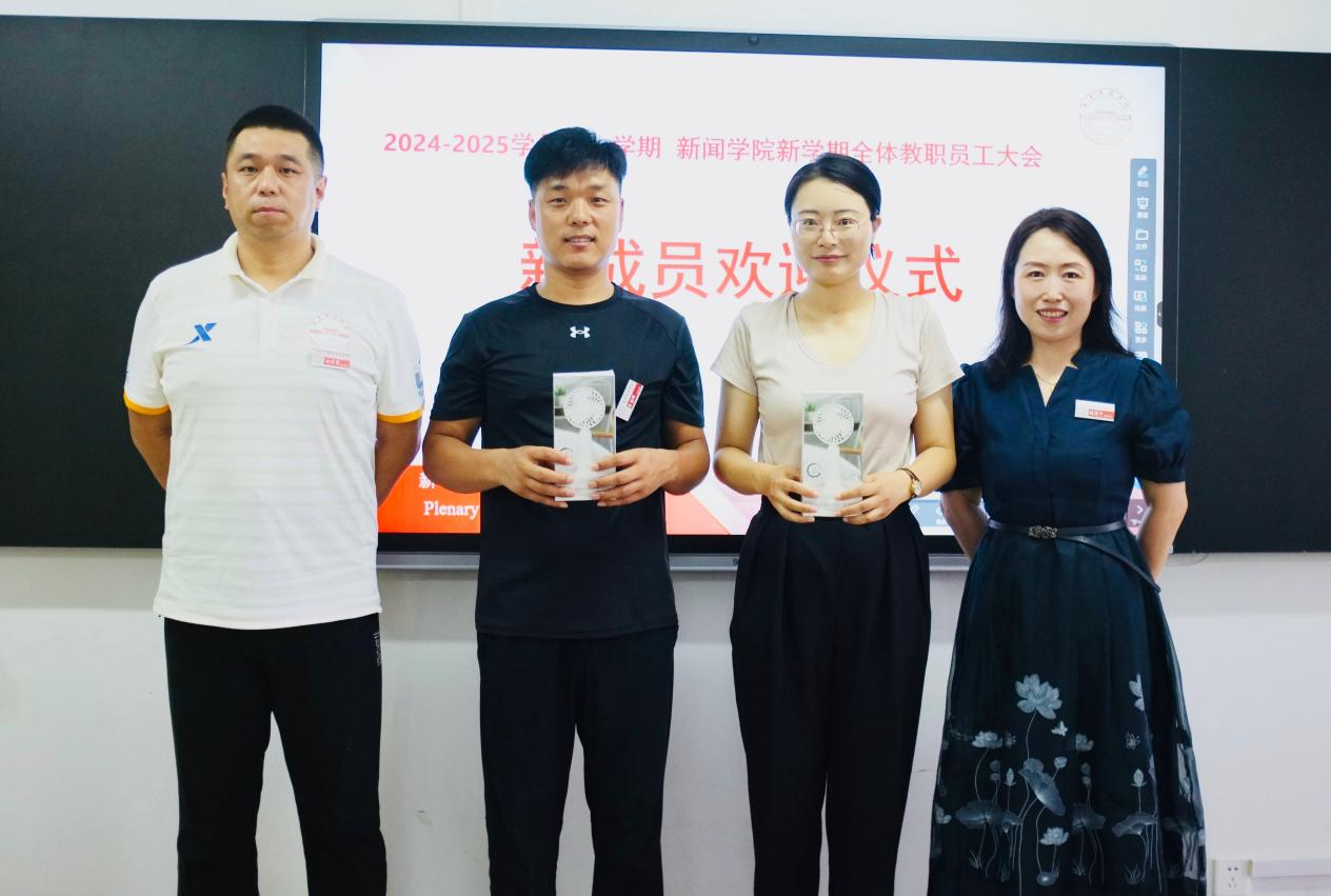 此间,新闻学院特别为专任教师吕品和辅导员李胜辉举行了“新成员欢迎仪式”,希望他们在学院工作愉快,为学院发光发热,教学上如明月清风培育学生成才,生活上如春风化雨关心学生成长。