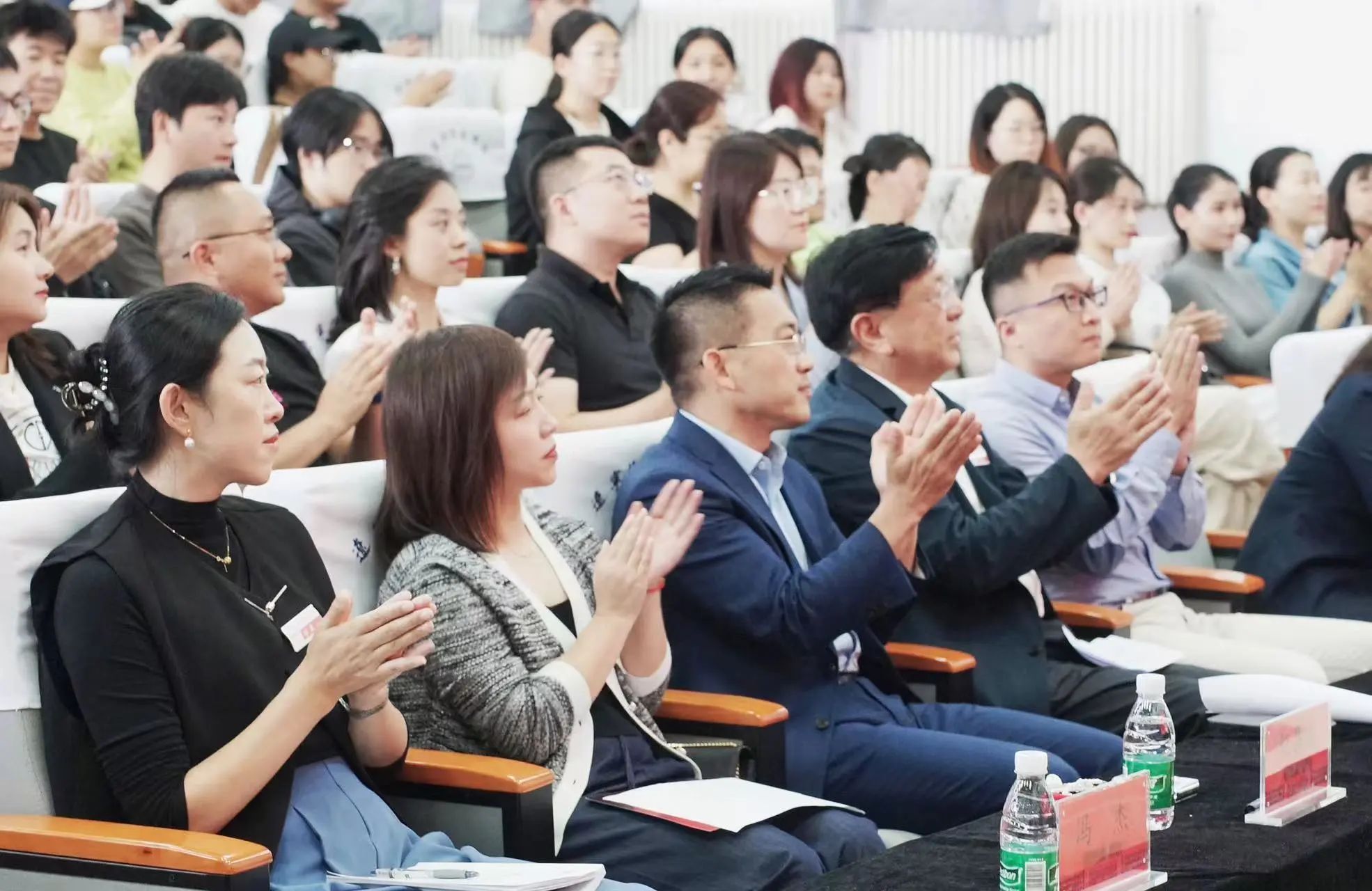 由与会企业代表登台宣讲。到场的各家企业代表分别上台,面向师生介绍企业文化、描绘企业发展蓝图、讲解定制培养要求、阐述人才发展目标与企业用人制度。企业代表们神采飞扬,图文音像有机结合,宣讲环节气氛热烈,在座学生积极主动添加企业用人微信号。