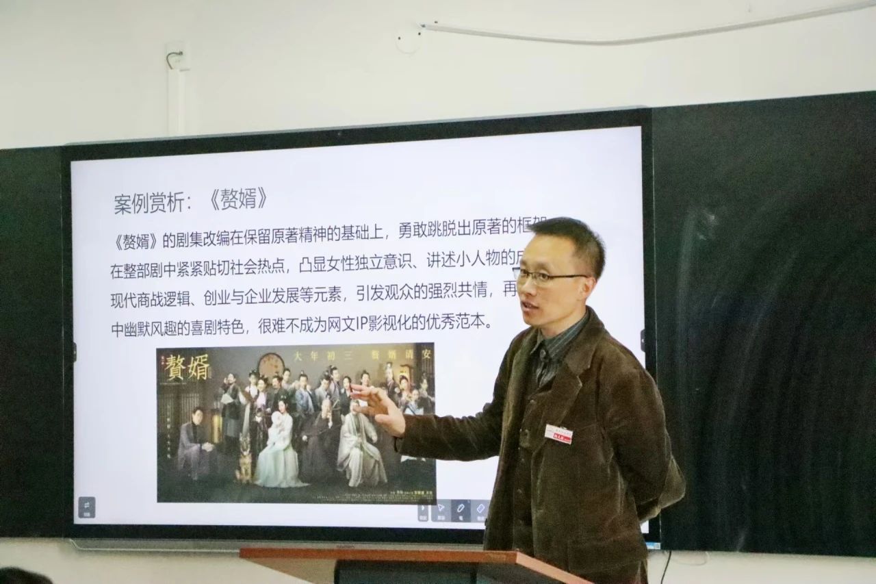 首先出场的张天毅老师带来的是《网络文学》课程,他为我们展示了网络文学影视作品改编赏析的内容。张老师乍一出场,便不同凡响,以其独特的视角和深刻的见解,评述网文作品、分析发展趋势,带我们穿越网络文学的发展历程,在很短的时间里,汇聚丰富的教学内容,跨度大、内容新、实践环节设计巧妙、师生互动积极活跃。