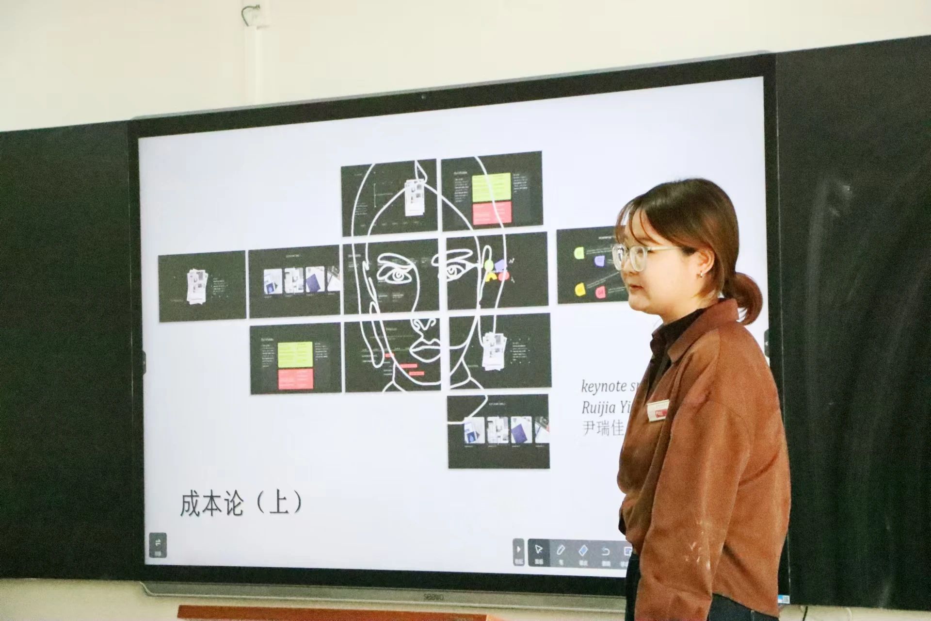 尹瑞佳老师在她的《互联网+创新创业》课程中,将深奥的经济学理论与实际生活中的经济现象紧密结合,采用生活中常见的案例来阐释边际成本、沉没成本和机会成本的深刻内涵与使用规律,让学生们在轻松愉悦的氛围中理解了经济学的核心概念和重要作用。尹瑞佳老师的授课方式灵活多样,她充分利用智慧屏优势展示图表并且现场手绘,讲画同步,不仅丰富了教学内容,而且使抽象的经济学理论变得易于理解和接受。