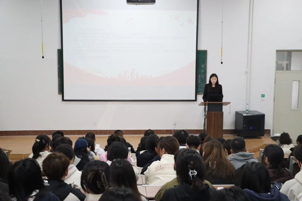 大会第三项,由新闻学院学生代表汤雨晴发言。她在发言中表示,学风是一所学校的灵魂,它关乎每一位学子的成长成才,影响着学校的整体风貌和长远发展。提倡所有学生干部群体,在校期间要积极参与社会实践,积极发挥引领作用,党员同学要勇做表率,带动周围同学共同进步,营造“比、学、赶、帮、超”的优良氛围,让学风建设成果惠及每一位同学。