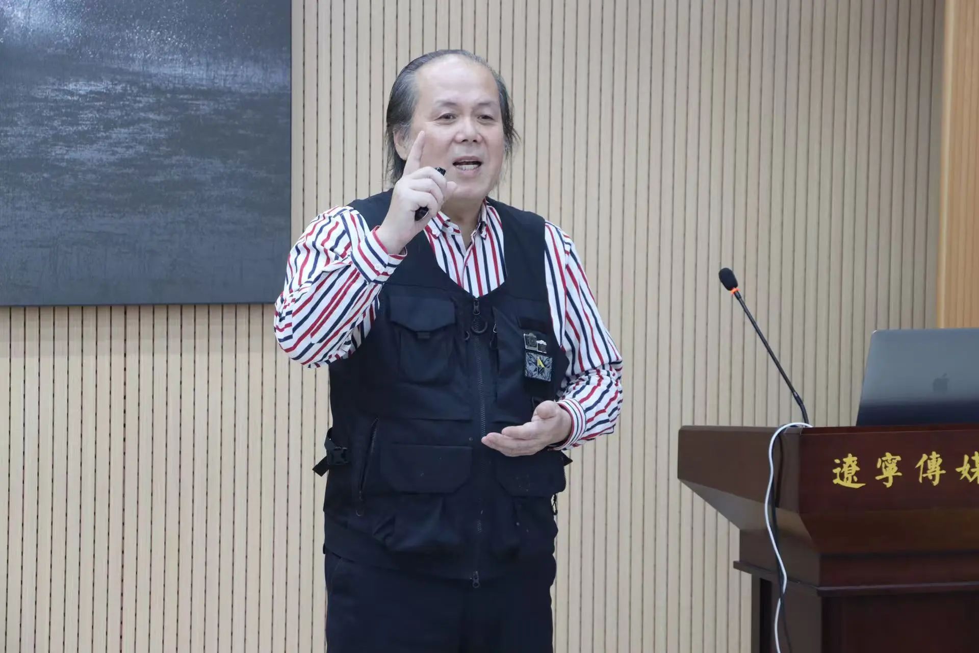 本次学术交流活动特邀沈阳新闻摄影家协会副主席王文、秘书长关晓刚、国家一级摄影师李万江教授、辽宁大学广播影视学院硕士研究生导师赵功博副教授做交流分享。新闻学院副院长张潇予、新闻与传播系赵敬卫教授及学院师生代表共计200余人参加讲座。