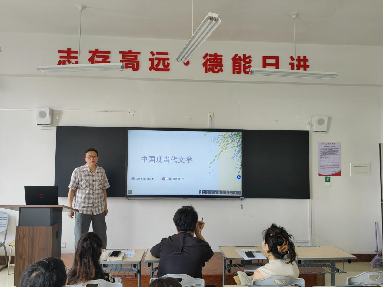 入职新闻与传播系的黄志勇老师是新闻业内资深专家,在地方主流媒体新闻一线工作35年,历任多家媒体采编部门主任,获国家、省以上新闻奖数十次,本次讲授的课程是《现当代文学》,黄老师以其丰富的从业经验深入浅出地阐释了新媒体传播视野下,为新闻专业开设《现当代文学》课程的必要性、差异性、创新性和设课侧重点,展现了自身的阅历与底蕴。