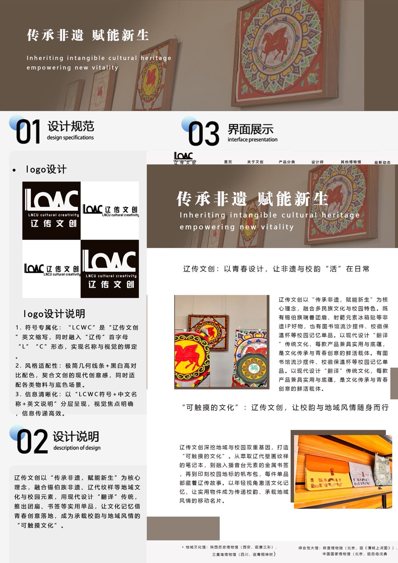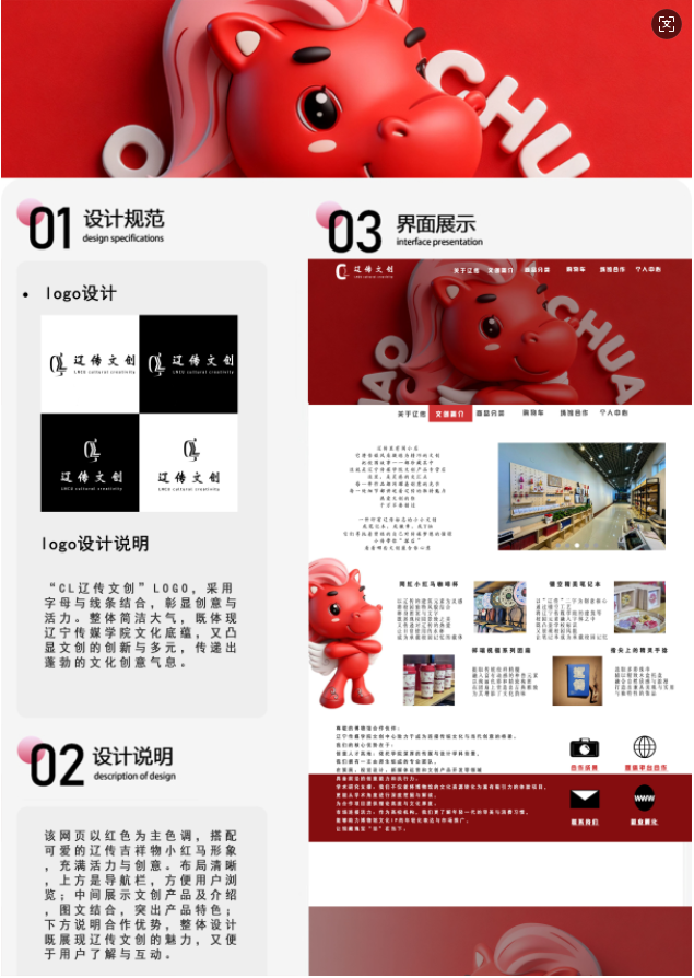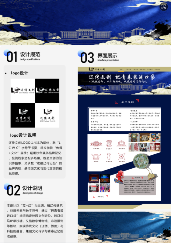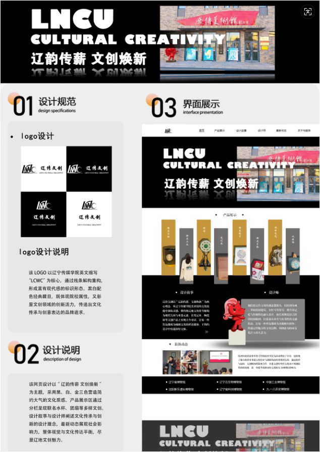 本次线上期中作品展集中呈现了电子商务及法律专业教学成果,涵盖该专业23级、24级学生,多组作品融入校徽、红马IP、非遗等元素,设计规范清晰、展现丰富,彰显了辽传的文化传承与创新,全面体现了该专业的育人成效。