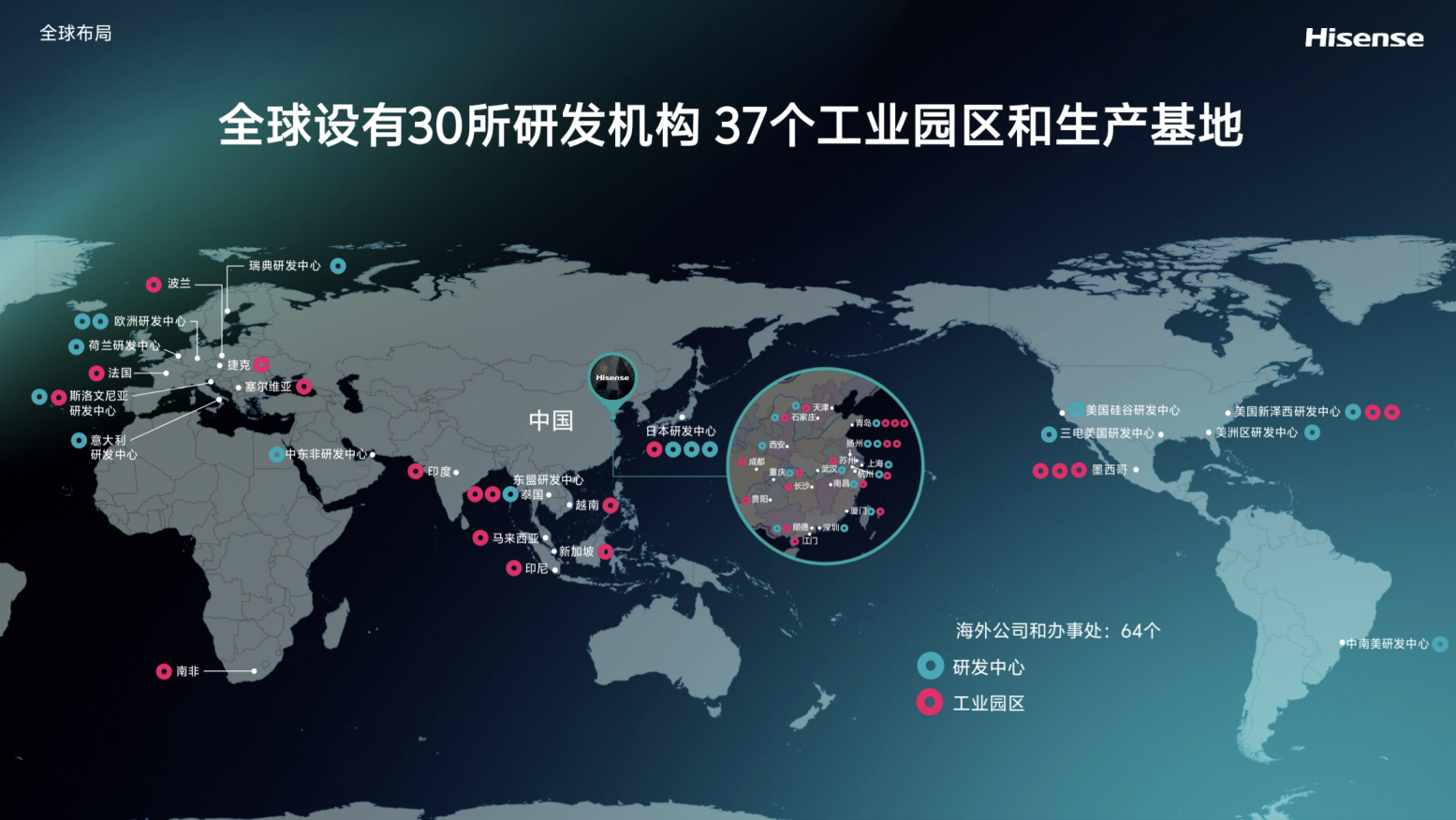 海信成立于1969年,总部位于中国青岛。旗下拥有海信视像、海信家电、三电控股、乾照光电、科林电气五家上市公司,拥有海信、东芝电视、容声、科龙、gorenje、ASK0等多个品牌.2024年,海信保持稳健增长,全年营收2153亿元,同比增长6.5%,其中海外收入996亿元,占整体营收46.3%。海信加速推进全球化布局,连续9年成为中国全球化品牌10强,在全球设有30个研发中心、37个工业园区和生产基地,设有64个海外公司和办事处。海信坚持布局体育营销强化自主品牌建设,先后赞助2016欧洲杯、2018世界杯、2020欧洲杯、2022世界杯、2024欧洲杯、2025世俱杯等6届世界顶级体育赛事,并成为2026年美加墨世界杯全球官方赞助商,品牌影响力乘势而上闪耀世界舞台。