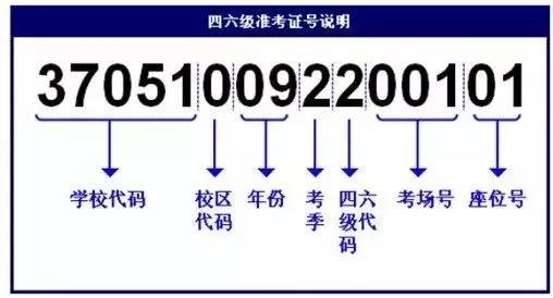 英语四六级准考证号为15位,以下图为例,其中前六位为学校地区代码(0420090),接着两位是年份(17),接着一位(2)代表下半年的考试,接着一位(1)代表四级还是六级,接着后三位(001)代表考场号,最后两位(01)代表座位号,最好能找到同考场的同学来推算。