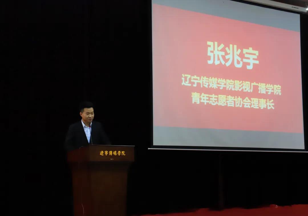 大会第六项,影视广播学院第一届青年志愿者协会常务理事会理事长张兆宇同学进行代表发言,他表达了一名青年志愿者的信心与决心,全体青协人必将不忘初心,用一颗炽热的心来履行责任。