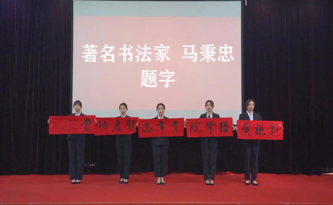 大会第八项,著名书法家马秉忠老师题写“影视广播学院青年志愿者协会”,祝贺青年志愿者协会的成立。