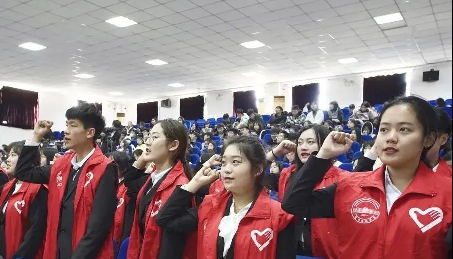 随后,青年志愿者协会会长刘嘉欣上台领誓,全体青年志愿者起立宣誓,铿锵有力的声音,代表着志愿者们勇做时代奋进者、开拓者、奉献者的赤子之心。