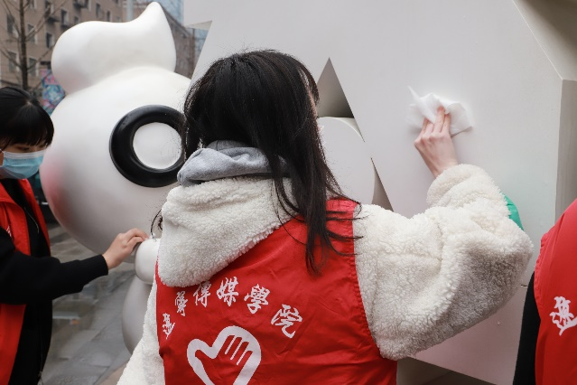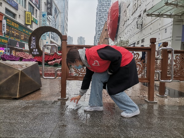 志愿者们首先对街上的公用设施进行了全面的擦拭清洁,又将地上的垃圾捡拾干净。让整个街上焕发出了雨后的生机。虽然天空中下着蒙蒙细雨,但志愿者们对于志愿工作的热情并没有减少半分。