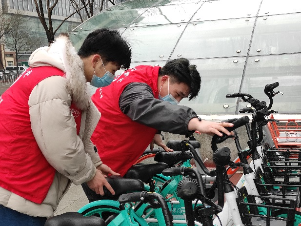 在这个倡导绿色出行的社会中,共享单车在街上随处可见。志愿者们对街上的共享单车进行排查,所有未规范停放的单车被志愿者们整齐划一的摆放好,既方便了人们的出行,又提升了我们的市容。