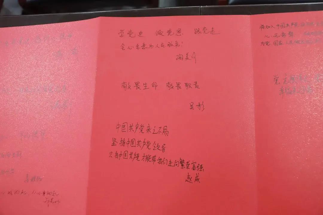电影结束之后,正良社区的党员代表以及所有的志愿者在签名册上写下了自己想对党说的话。在中国共产党成立100周年之际,重温党的历史,无论是对过去、现在还是将来,都具有非常重大而深远的意义。