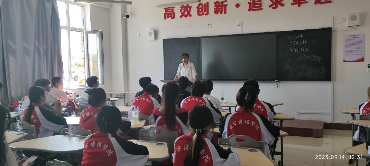 编导本2302班学业指导教师宋美颖与新生们分享了许多大学学习生活的趣事,鼓励学生们尽快适应大学集体生活,遵守学校的各项管理规定,保持乐观开朗积极的心态,以热情饱满的精神状态迎接大一的学习和生活。