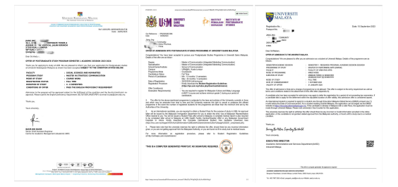 幸运的是,陆陆续续地,姜静收到了三所马来西亚高校的录取通知:马来西亚理科大学(USM)、马来西亚国立大学(UKM)和马来亚大学(UM)。 这三所学校各具特色,但具体到专业方向和课程设置,又各有不同。经过一番深思熟虑,她最终选择了马来亚大学戏剧表演专业,决定在这里继续攻读硕士。