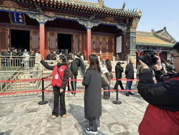 电影学院志愿者致力于社会服务奉献,在本次的沈阳故宫志愿者活动里,表现突出。清晨,第一缕光洒在大政殿的琉璃宝顶上,我们已就位,调好相机参数,捕捉光影变换,人影交错。电影学院志愿者们运用自己的传媒思维,不遗余力帮助沈阳故宫加大文旅宣传,让更多的人体会和关注到到沈阳故宫的魅力。