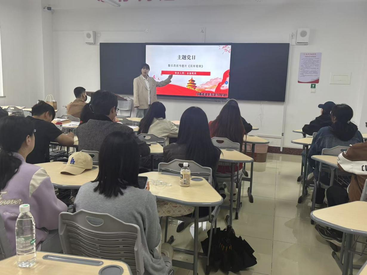 5月14日下午,影视学院党总支在管理楼104召开主题党日,观看警示教育专题片《筑牢堤坝》,