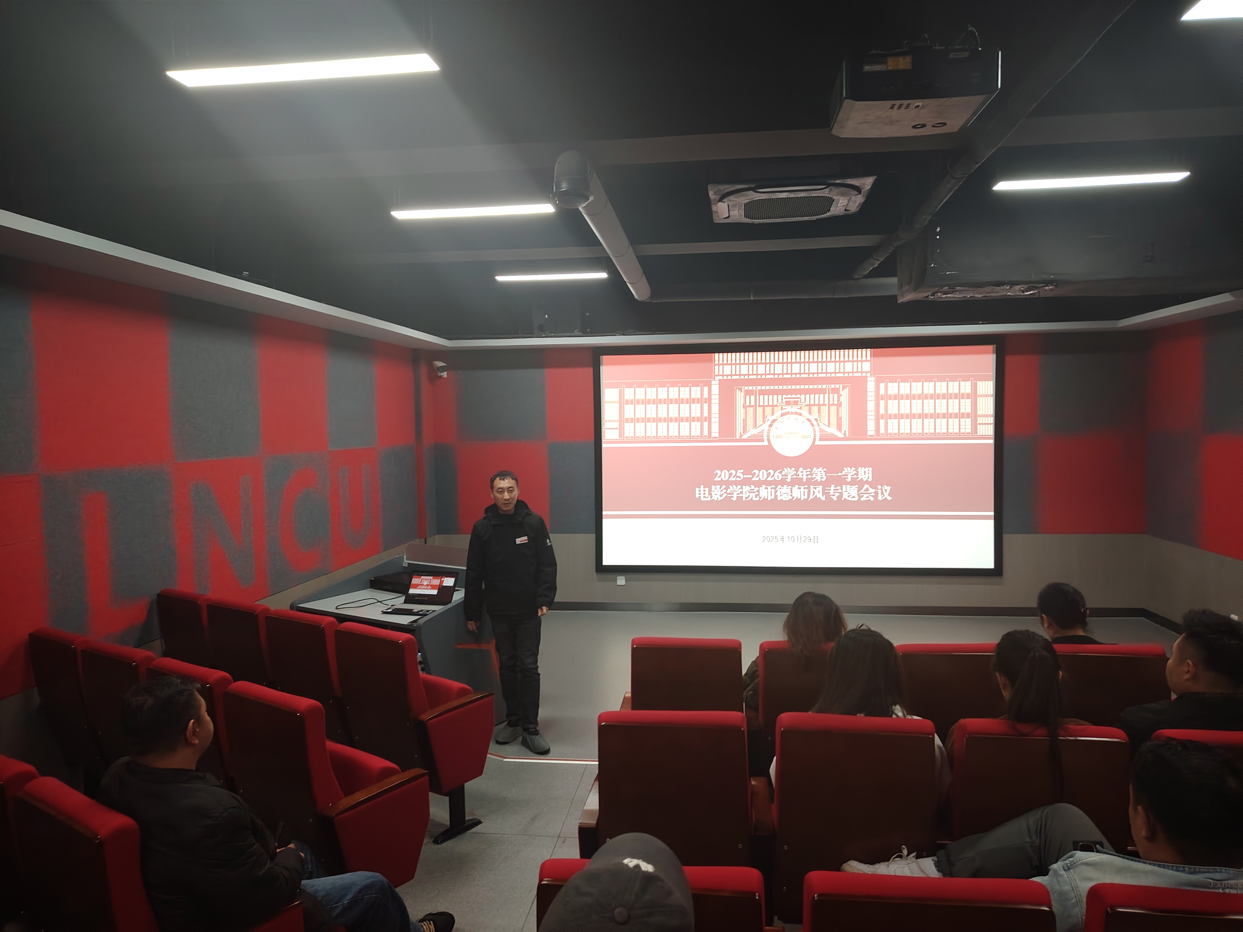 为深入贯彻立德树人根本任务,巩固拓展师德师风建设成果。电影学院于10月29日下午在影视楼312成功召开师德师风建设月暨党建引领立德树人行动总结大会。本次会议在学院领导统筹部署下顺利进行,全体教师共同参与,通过专题学习、方向部署、路径领学等环节有效凝聚了育人共识,为学院影视教育高质量发展筑牢思想与组织根基。