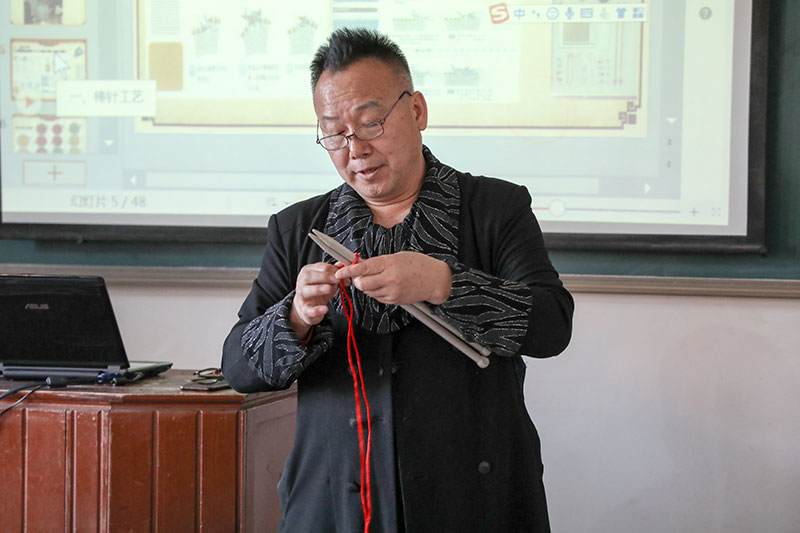 柳力巍老师通过《服饰手工艺》中的手针工艺、编结工艺、编织工艺的理论讲解和实践训练,重点阐述了被列为世界非遗中的刺绣、古典而又现代的棒钩针基本针法和具有民族特色的中国结艺。详细展示了服饰手工艺之技法,从而解决了学生如何选材、选工具,正确穿针引线等一系列实际操练问题,为后续服装设计与制作课打下坚实的基础。