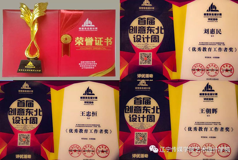 这次评选活动参与非常广泛,东北地区百余家知名设计机构、设计企业和设计类高校组织参加了本次活动,其中我院刘惠民院长和王忠恒、王朝辉老师在众多参赛者中脱颖而出,以丰富的教学经历和丰厚的教学成果打动了评委,荣获首届东北地区优秀教育工作者奖。