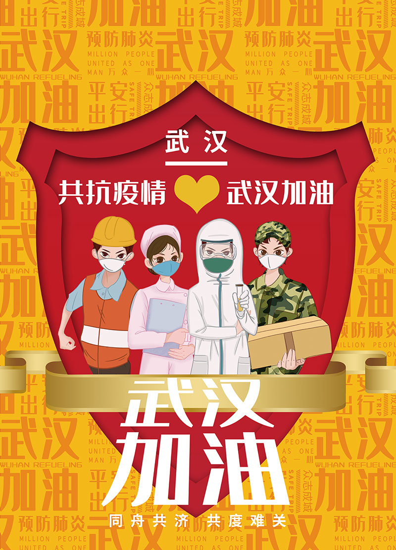 目前,全国人民都在抗击疫情战役当中,各行各业以自己的方式参加抗击疫情活动,医务人员亲临前线治疗病人、医疗器械单位忘我工作生产医疗用品支援“前线”,机关企业捐款捐物,为中国加油!为武汉加油!beat365在线唯一官网艺术设计学院广大师生也积极行动起来,拿起画笔进行创作,为抗击疫情宣传开展了抗击疫情公益海报创作活动,发挥专业优势宣传抗击疫情活动,同学们积极参与,用自己的方式为全国送去祝福与期盼。艺术设计学院广大师生积极参加创作,共设计海报59幅。其中视觉系39幅,广告系20幅。选出有代表性的战“疫”海报选登如下: