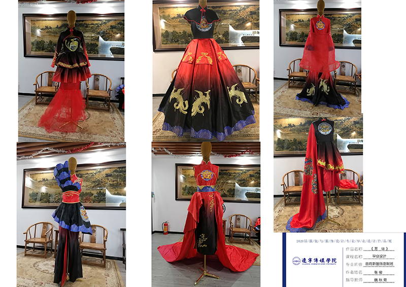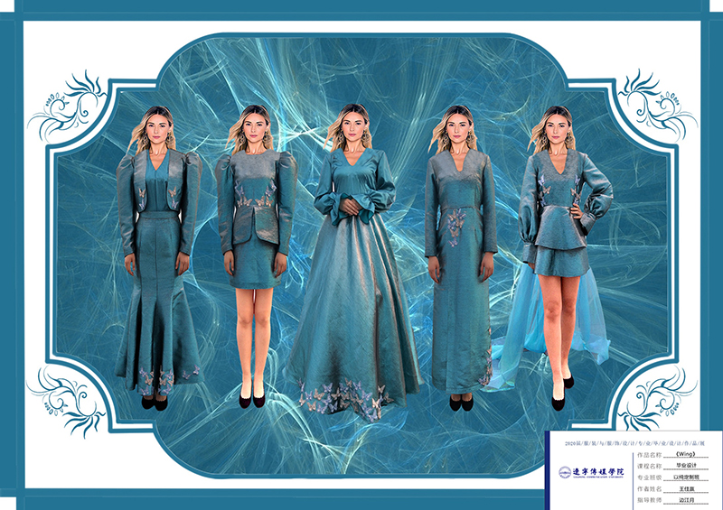 在新冠疫情的特殊时期,教师秉承着战疫防疫不掉线,持续打造云端课程,在充分了解学生具体情况,学校相关要求和教师自身教学条件的基础上,在毕业设计指导环节采取云端指导,老师不仅对学生作品进行了耐心的指导,而且对作品质量有严格的要求,使今年的毕业设计作品的质量得到了保证。2020届服装与服饰设计专业共计90名毕业生,指导教师:张漪、郭岩、魏秋菊、柳力巍、焦子桐、顾晓雪、刘晓萌、边江月。本次毕业设计主要分为两个方向:创意礼服设与制作方向和创意时装设计与制作方向。