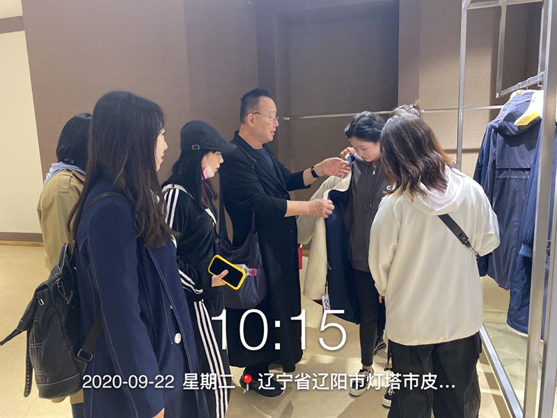 2020年9月22日,艺术设计学院服装系KC企业定制班同学一行二十七人在边江月老师、柳力巍老师的带领下,前往辽阳市灯塔市佟二堡海宁皮草城开展市场调研和社会实践,KC设计总监吴峰、签约设计师马宁、李祎、杨严,讲师赵洋陪同调研。