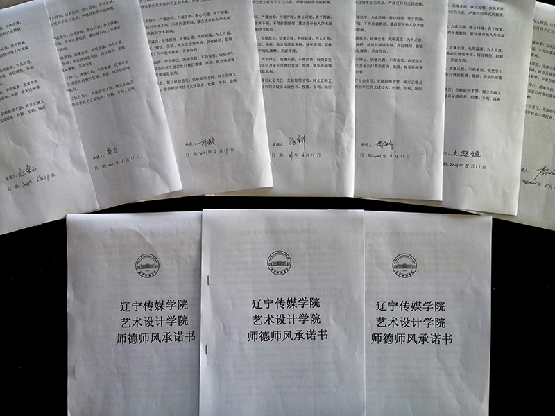 会议内容第二项,艺术设计学院全体教职员工签署《艺术设计学院师德师风承诺书》