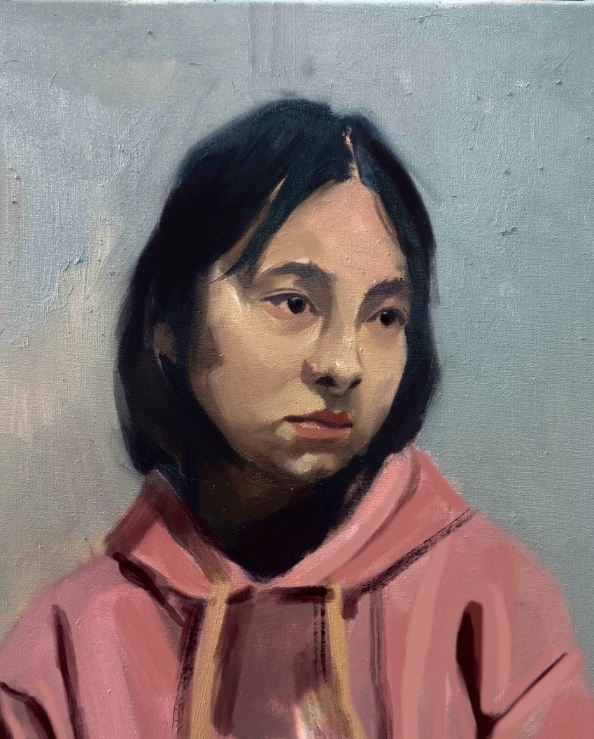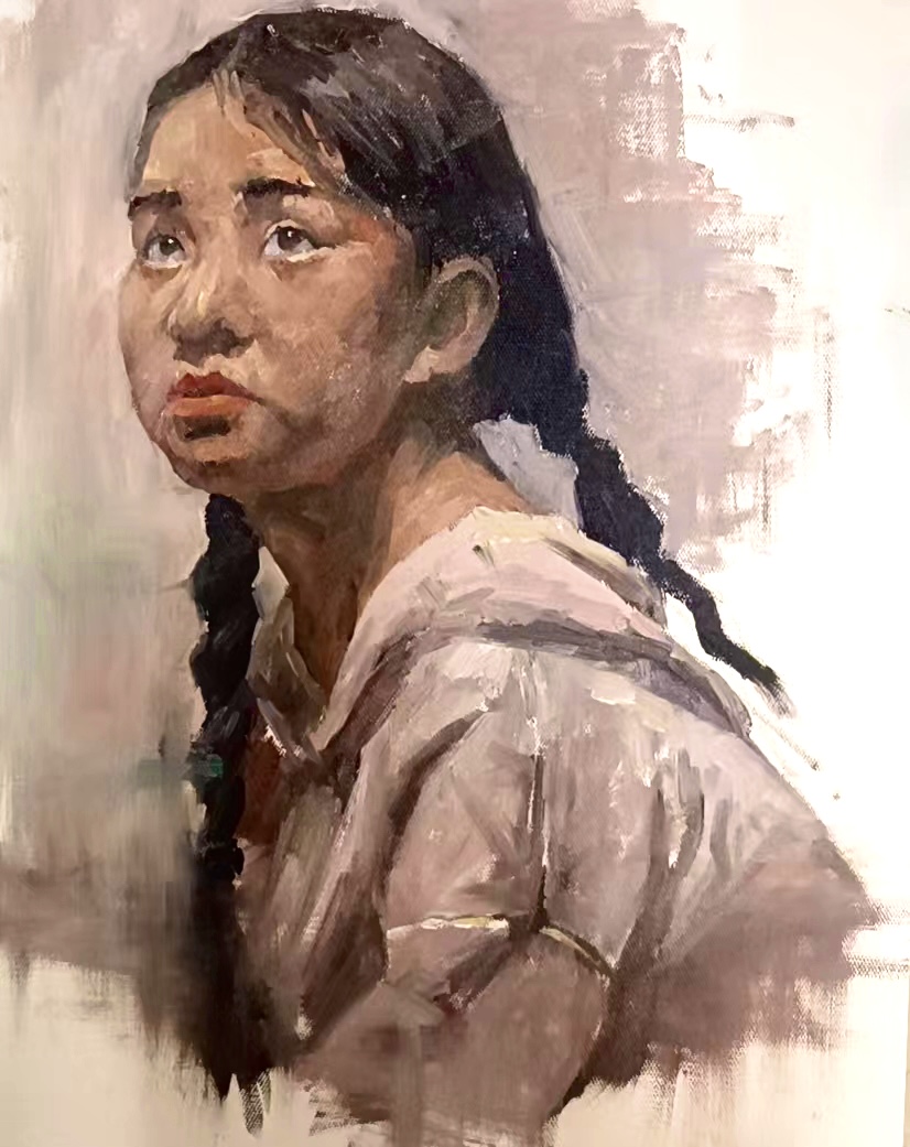 通过《着衣半身像》课程使学生提升探究人物写生、造型能力和写实绘画与直接画法的能力。这门课程着眼于学生培养对人物形态的敏锐观察、特征的深刻理解和细节的精细呈现能力。将所描绘的人物呈现得栩栩如生,从而创作出充满深度和情感的半身像作品。这个过程不仅要求学生准确捕捉人物的面部特征和身体语言,还强调他们对绘画细节的严格把控,使得作品更富表现力和艺术感。