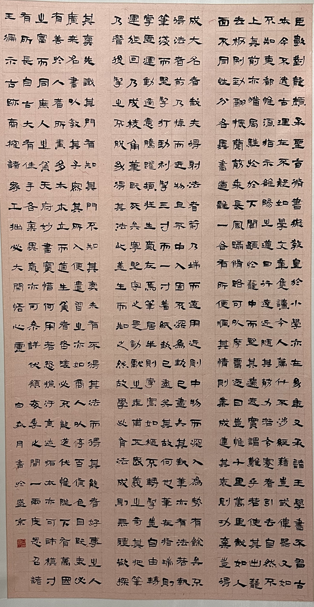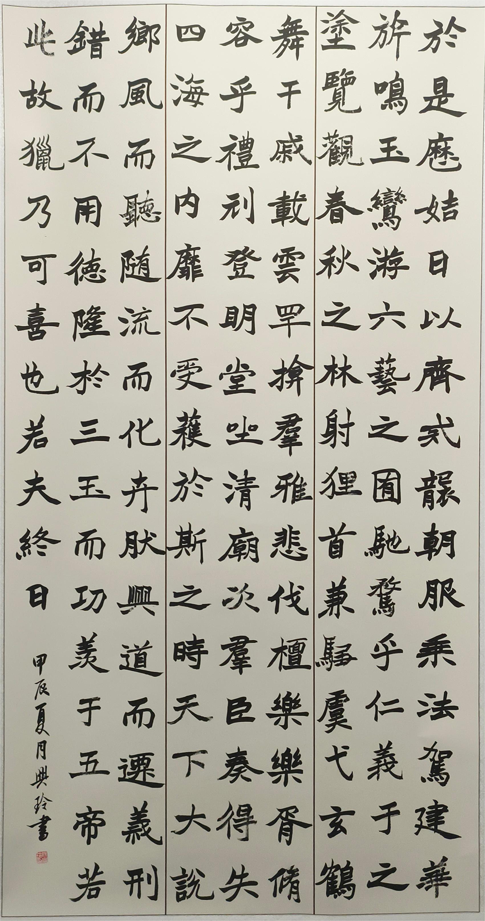此次展览共展出20级优秀毕业作品20幅,形式丰富,书体多样,具有较强的视觉冲击力和艺术表现力,反映了艺术学院书法学专业在教学期间对传统与创新的追寻。艺术学院书法系重视书写技能的系统训练与文化底蕴的全面夯实,理论指导实践,实践验证理论,始终践行为每一位学生量身定制学习计划,因材施教,因人定标。作品创作结合国家级、省级展赛进行开展,以赛促教,以赛促学,使得学生在书法展赛中充分展示自己的专业水平,屡获佳绩,得到行业专家学者的肯定认可。目前在校学生累计获得国际国内比赛奖项100余项。其中在教育部主办的《第五届中华经典诵写讲大赛》中,赵鹏飞等5位同学获大学生专业组优秀奖;辽宁省教育厅主办的第一届、第二届《辽宁省高校师生书法大赛》中,于伟超等36名同学获一、二、三等奖;辽宁省教育厅主办的《辽宁省中外大学生中华经典诵写讲大赛》中,王文轩等9位同学获一、二、三等奖;辽宁省教育厅主办的《辽宁省“海华奖”大学生书法技能竞赛》中,宋英源获一等奖等等。