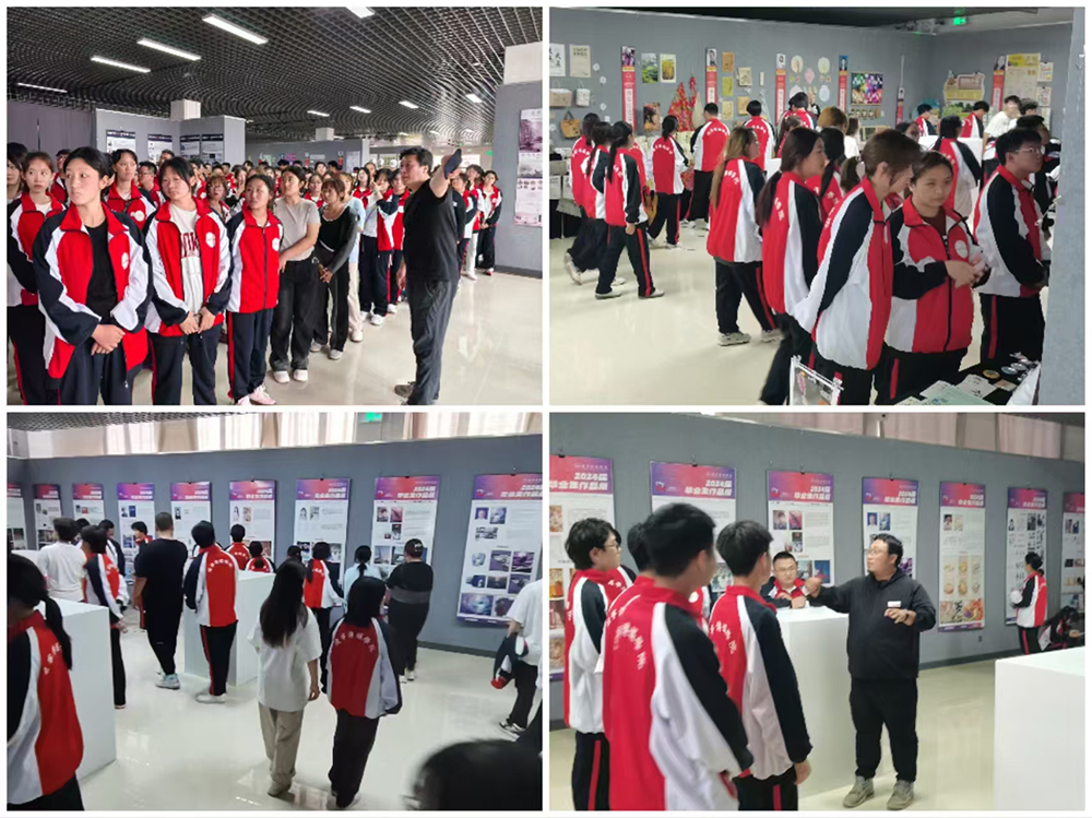 在观展过程中,新生们对学长学姐们的优秀作品表现出极高地热情和赞誉。通过作品,他们了解到未来的学习方向和行业的发展趋势,同时也激发了自身对艺术创作的热情。指导教师也在现场解读作品的设计理念和创作过程,让新生们在欣赏作品的同时,也能收获专业知识与灵感上的启发。