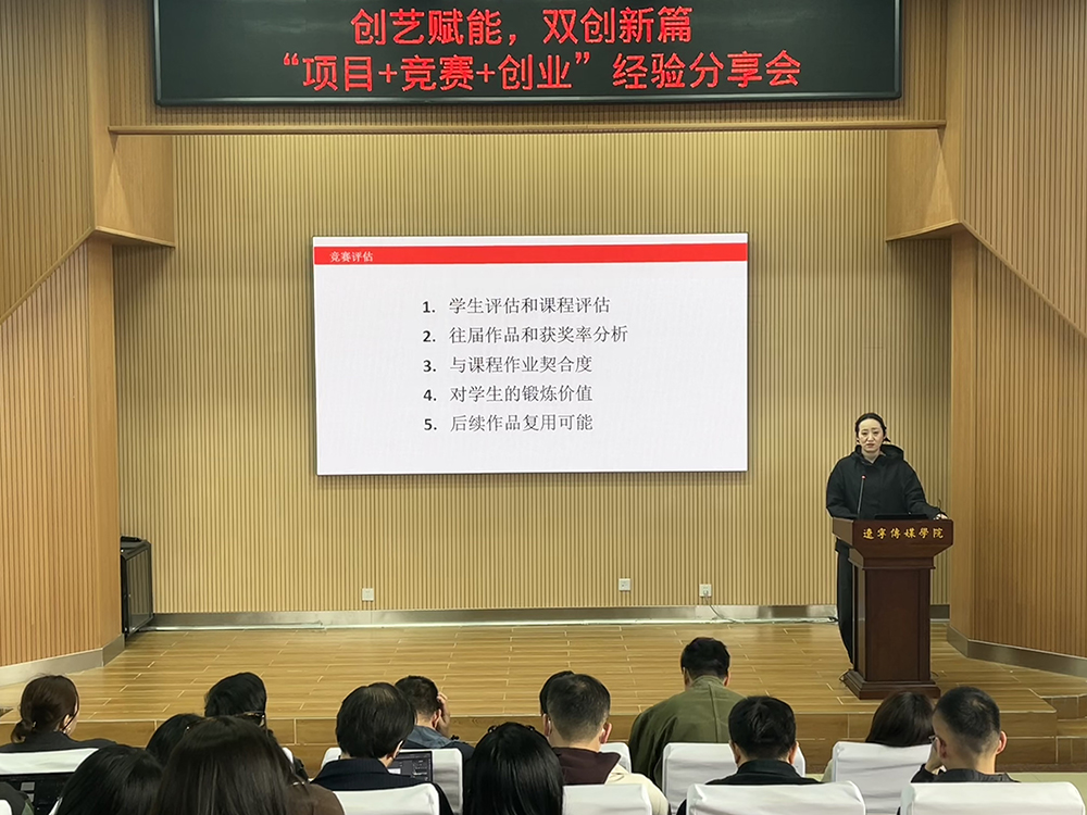 为进一步推进我院创新创业教育工作的发展,提升师生在创新创业赛事中的竞争力,4月18日下午,艺术学院于管理楼109报告厅召开“项目+竞赛+创业”经验分享会。会议以“创艺赋能,双创新篇”为主题,以“以赛促学、以赛促教”为目标,旨在整合双创资源,推动学科创新成果转化。会议由艺术学院副院长王丽娜主持,全体教师参会。