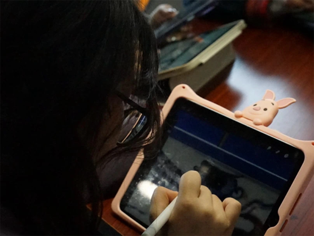 与传统参观不同,此次活动增添了充满艺术气息的实践环节。同学们携带平板,运用专业的绘画软件,对眼前的文物进行板绘创作。